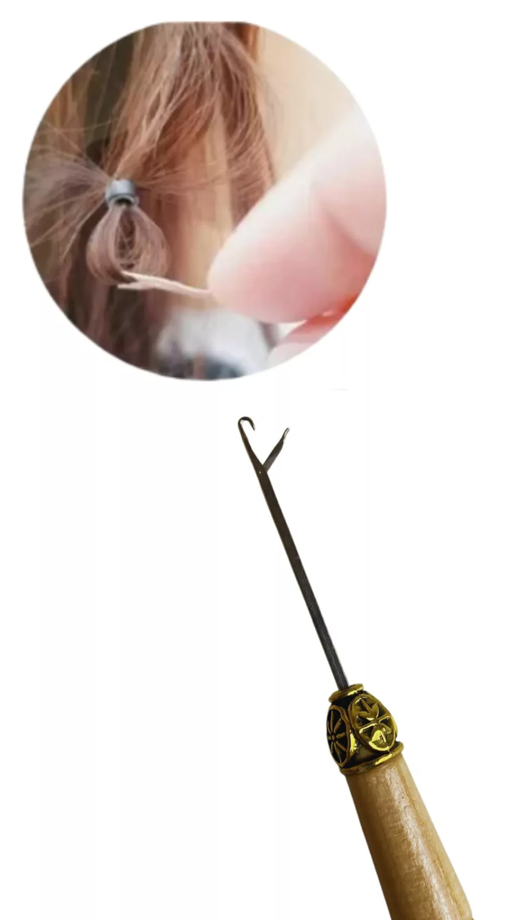 Ponta em formato de gancho: Permite que a agulha se deslize facilmente entre as mechas de cabelo.