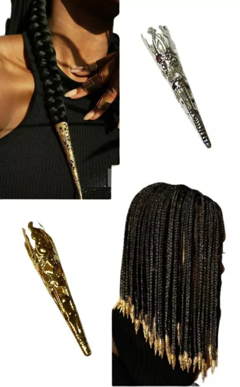 Dê um toque marcante e cheio de estilo às suas tranças com o Anel Ajustável para Trança com Ponta. Ideal para customizar tranças, twists, dreads e faux locs, esses acessórios são fáceis de aplicar e permitem distribuir os anéis ao longo do cabelo, criando um visual único e sofisticado.