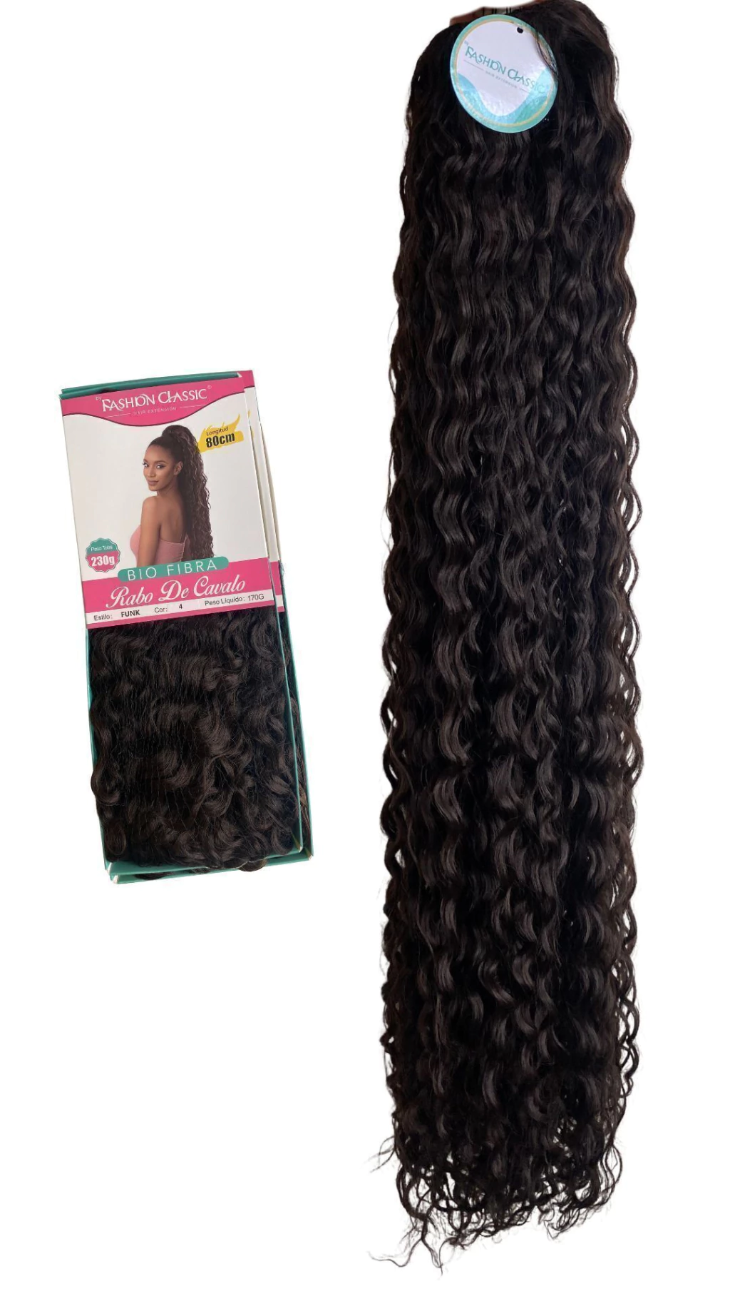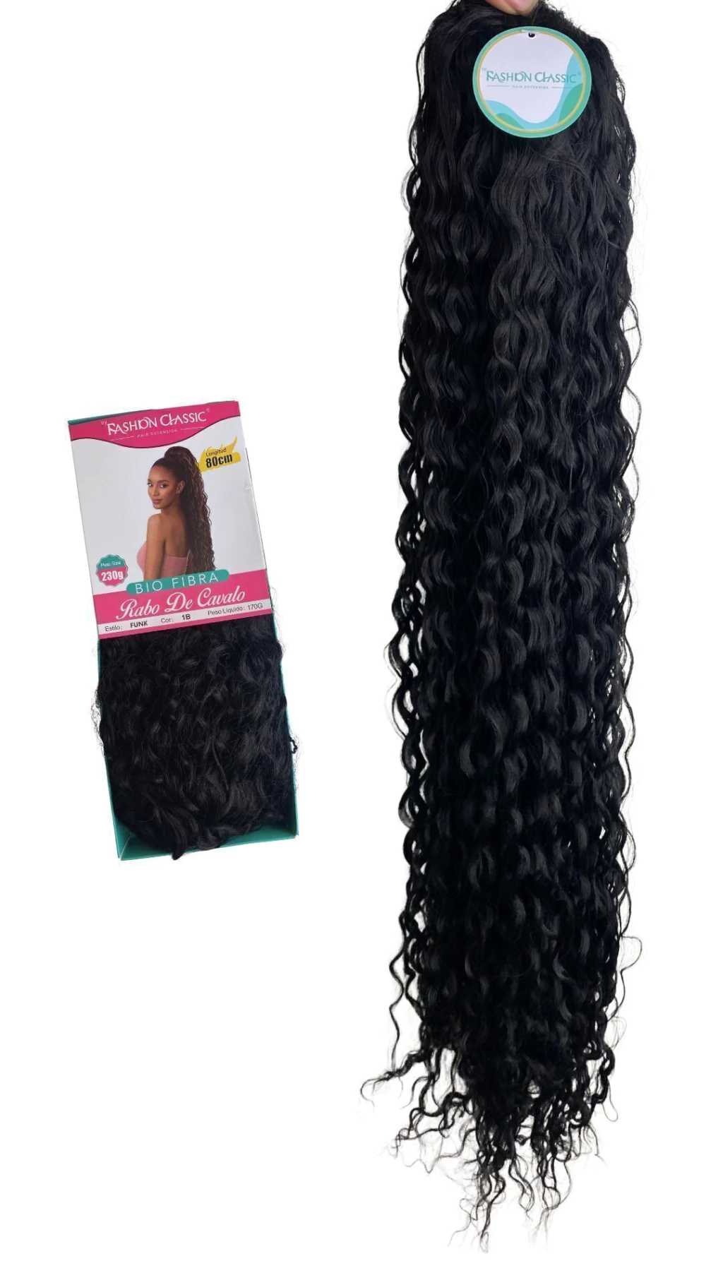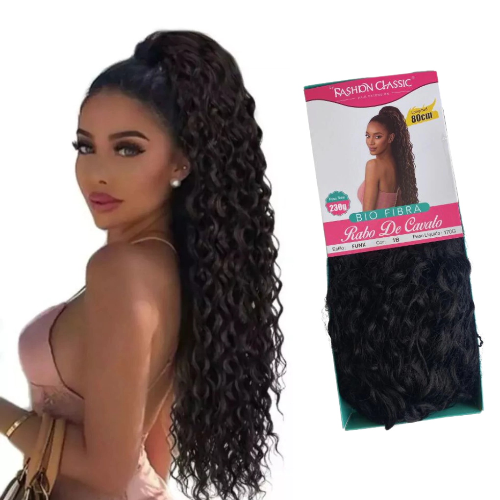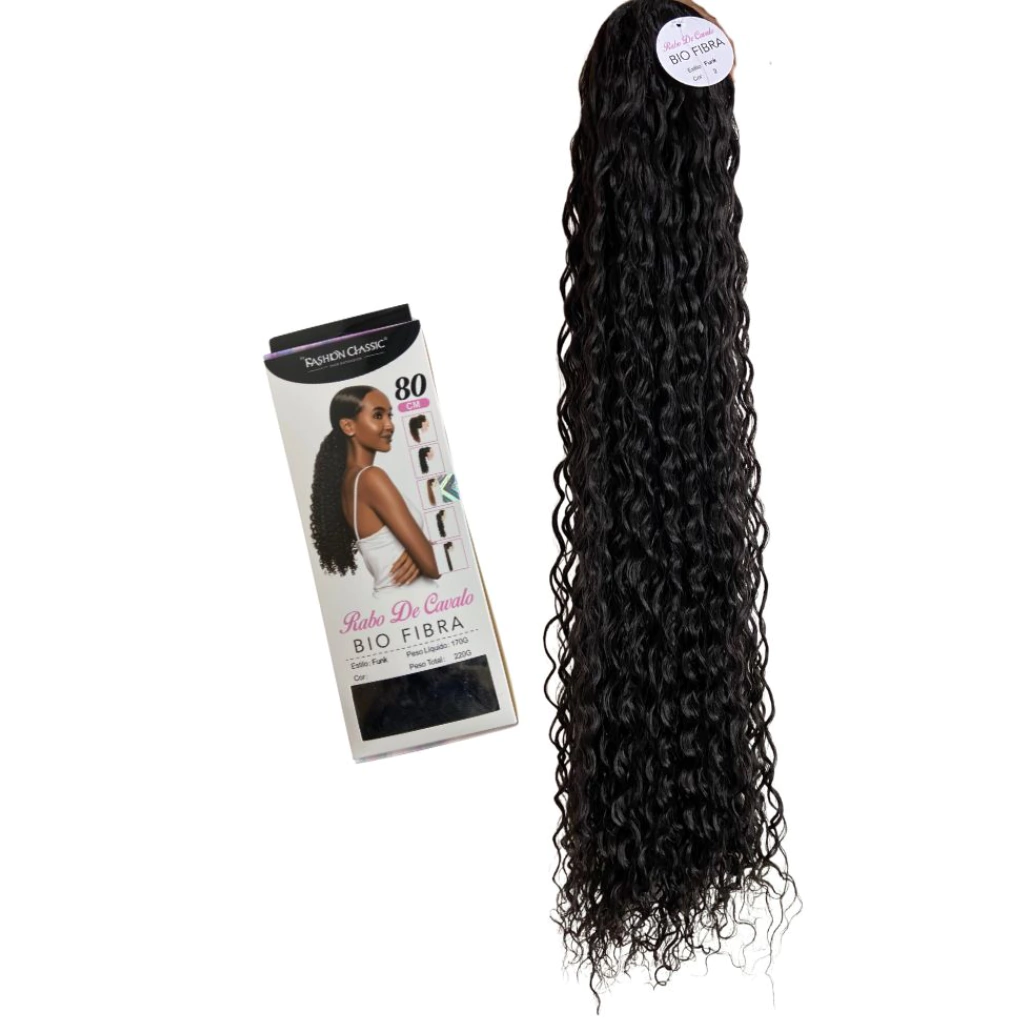 Aplique Rabo de Cavalo Cacheado Bio Fibra Funk 80cm Fashion Classic -170g