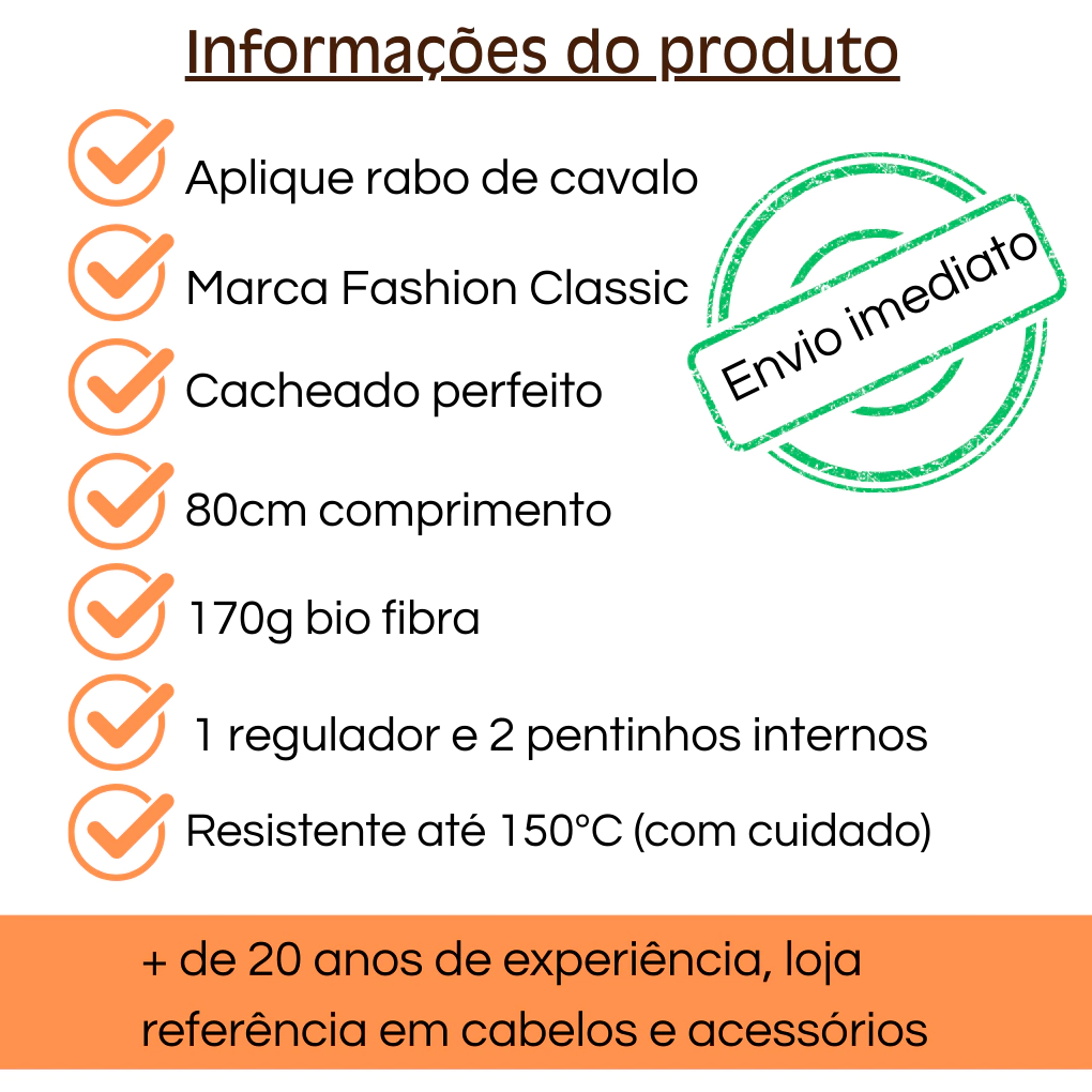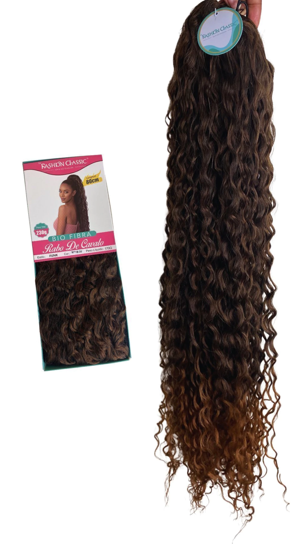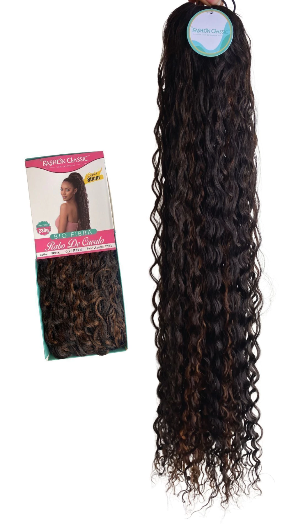 Aplique Rabo de Cavalo Cacheado Bio Fibra Funk 80cm Fashion Classic -170g