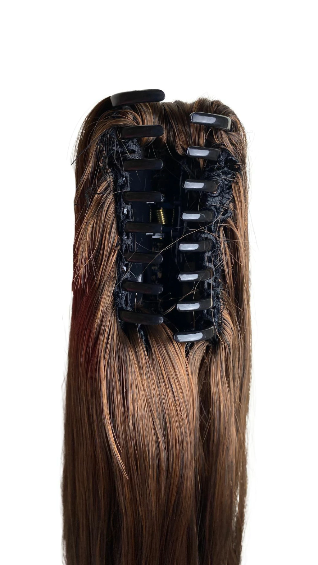 Com a piranha integrada, o aplique pode ser facilmente preso ao cabelo, criando um rabo de cavalo longo e volumoso em menos de um minuto, sem complicação. O material de alta qualidade imita os fios naturais, misturando-se perfeitamente ao seu cabelo, garantindo um resultado natural e sofisticado.