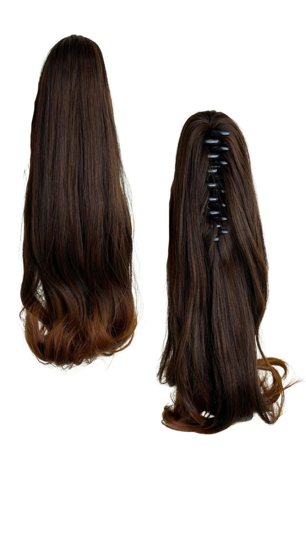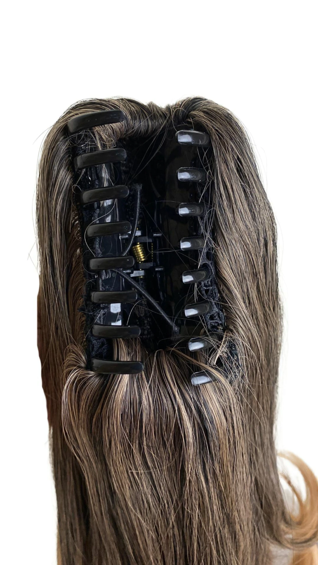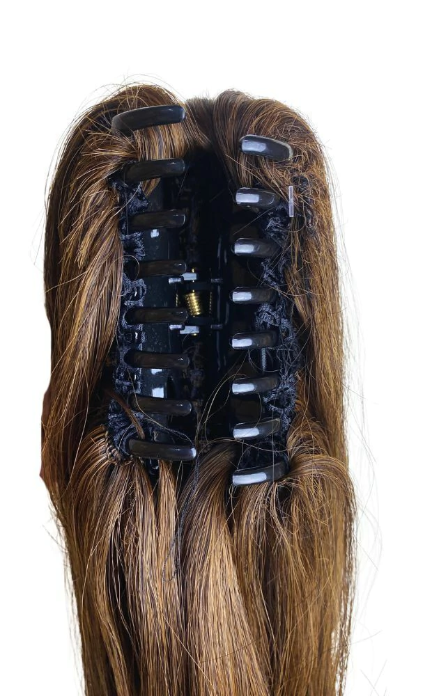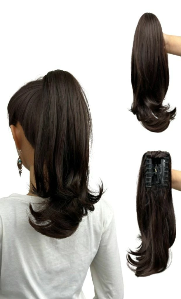 Com a piranha integrada, o aplique pode ser facilmente preso ao cabelo, criando um rabo de cavalo longo e volumoso em menos de um minuto, sem complicação. O material de alta qualidade imita os fios naturais, misturando-se perfeitamente ao seu cabelo, garantindo um resultado natural e sofisticado.