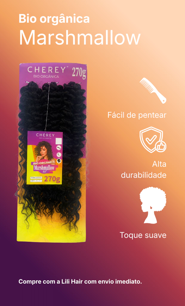 Apaixone-se pelo Cabelo Bio Orgânico Crochet Cacheado Marshmallow da Cherey — o aplique que eleva seu visual em segundos e destaca sua beleza de forma natural e irresistível. 💖✨