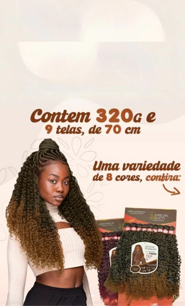 O cabelo Samba Bio Proteína da marca African Beauty é uma opção incrível para quem busca naturalidade, versatilidade e estilo em seus penteados, fibra com maior durabilidade. Com 70 centímetros de comprimento, esse cabelo cacheado oferece um visual longo e cheio de movimento, perfeito para quem deseja adotar um look impactante.