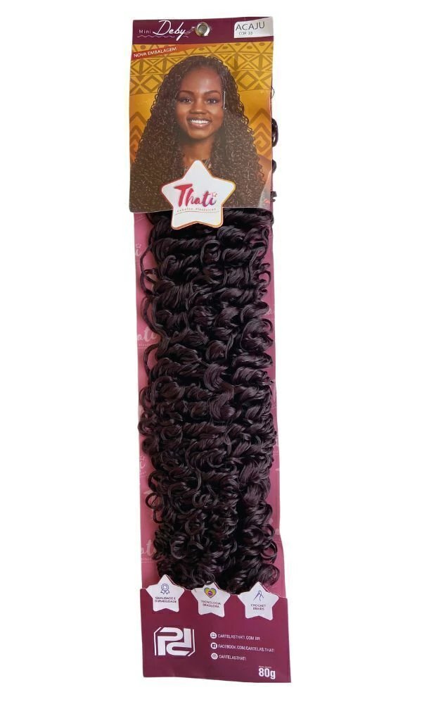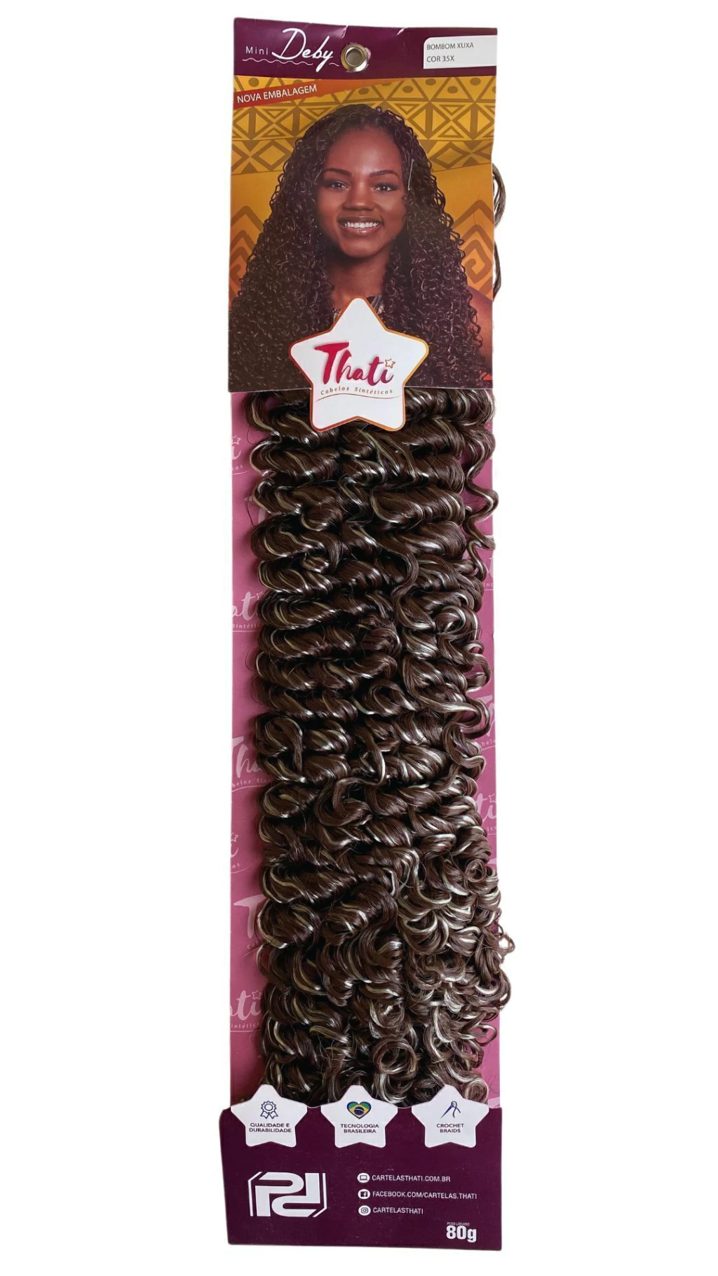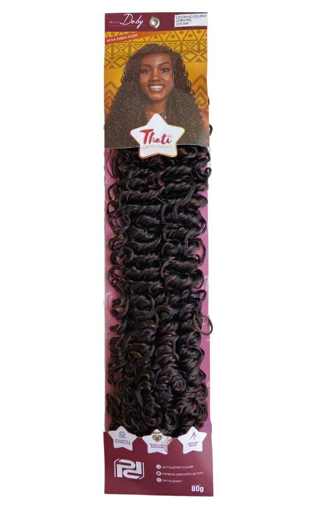 As Cartelas Thati Mini Deby têm como característica cachos pequenos (molinha). É uma versão dos cachos Deby, porém, são mais fechados, permitindo que brinque com diferentes estilos e se sinta uma diva! Ainda é possível realizar alongamento e utilizar várias técnicas de aplicação, como o fio a fio e Crochet Braid. O diferencial do nosso produto é a qualidade e durabilidade.