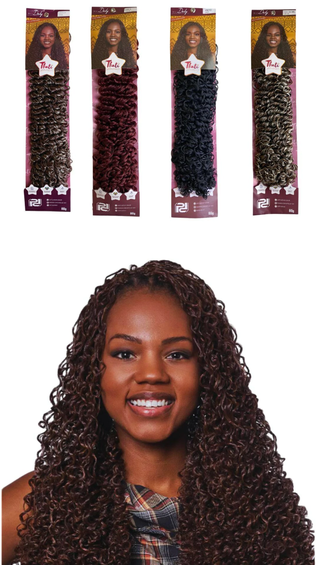 Esses cuidados garantem que o cabelo sintético cacheado Mini Deby da linha Thati continue bonito, com cachos bem definidos e duradouros, seja utilizando a técnica fio a fio ou crochet braid.