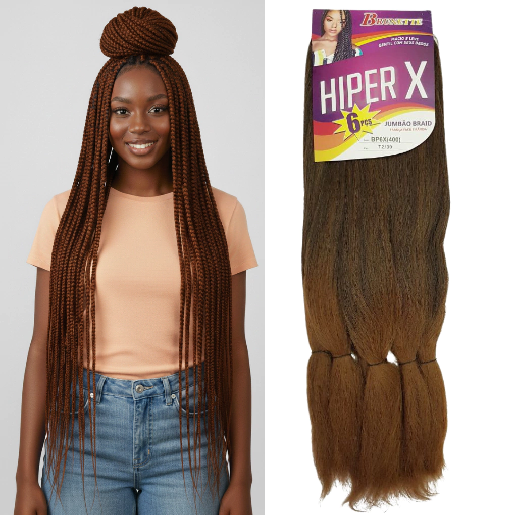 Facilidade de Aplicação: O Jumbo Hiper X Jumbão Braid é projetado para ser fácil de pentear e modelar. A sua estrutura facilita a criação de tranças uniformes e bem definidas, garantindo um acabamento profissional e duradouro.