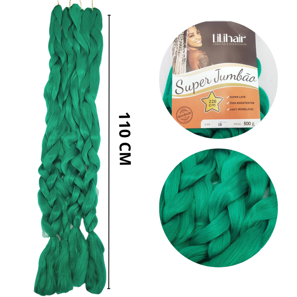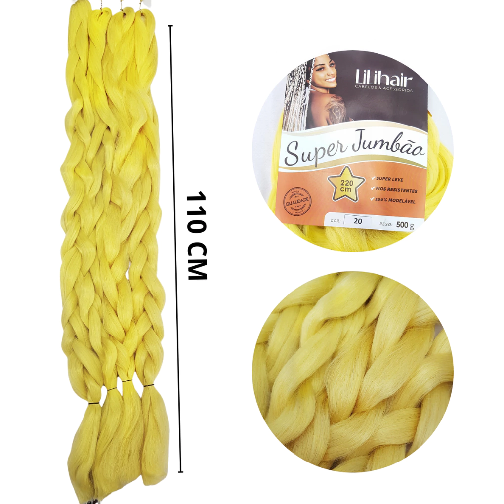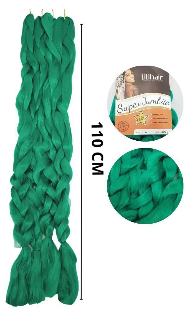 Cabelo Sintético Jumbo Braid 500 gramas Toque de Seda, aspecto crespo e aparência natural, com aproximadamente 2.20 cm de comprimento e 1.10 cm (dobrado).