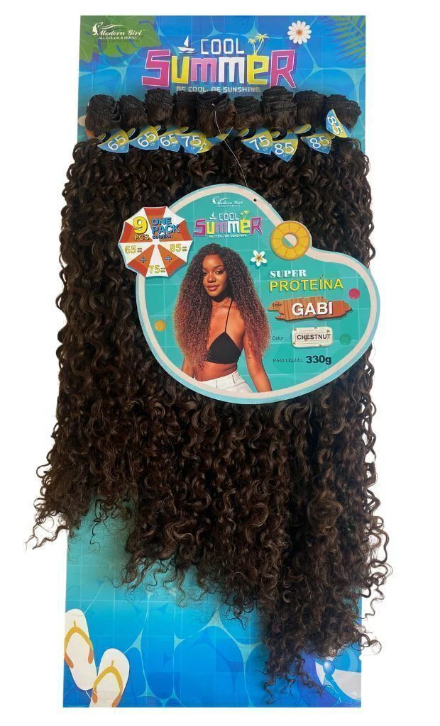 Cabelo Super Proteína Gabi Cacheado linha Cool Summer Modern Girl é a escolha ideal para quem busca mais volume, definição e um visual moderno. Com fios desenvolvidos com super proteína, essa linha proporciona cabelos cacheados ou ondulados com aparência 100% natural, maciez intensa e brilho duradouro.
