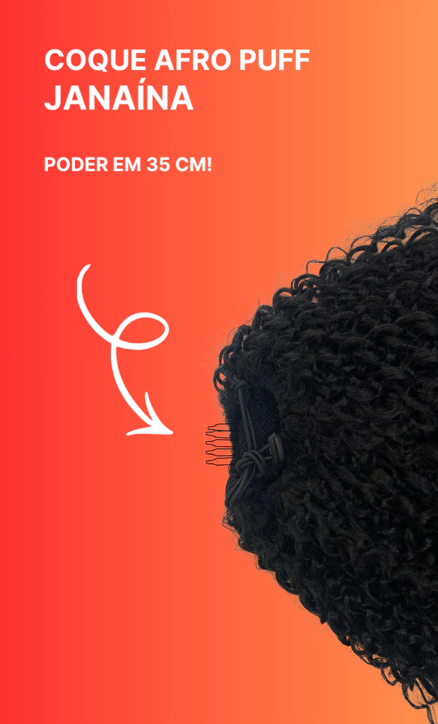 Fácil de colocar e superversátil, o Afro Puff Janaína é perfeito para quem deseja um visual poderoso, prático e cheio de atitude.