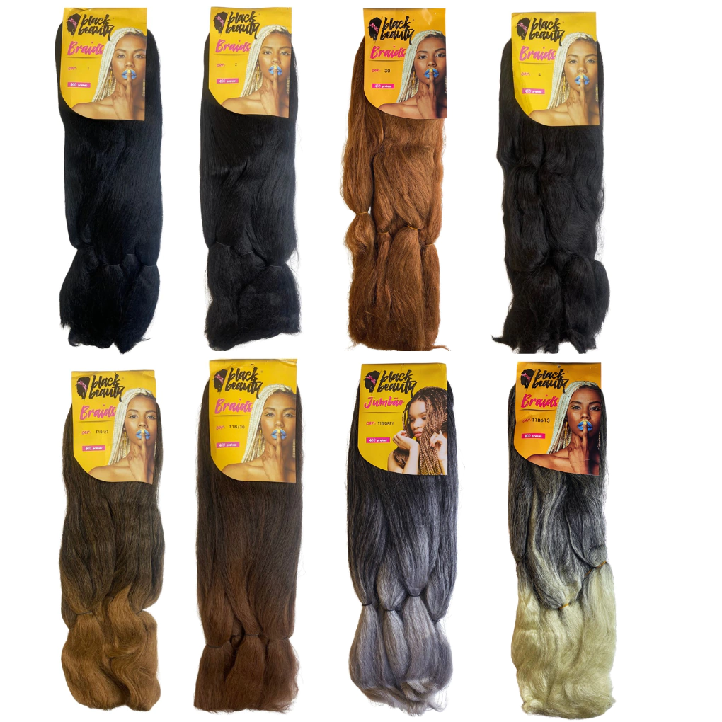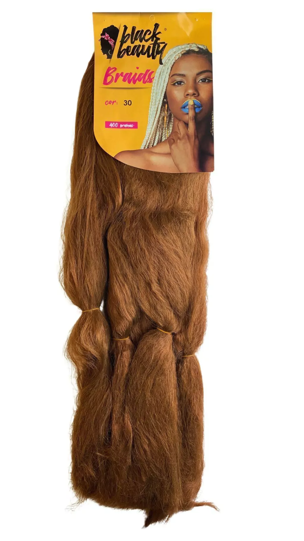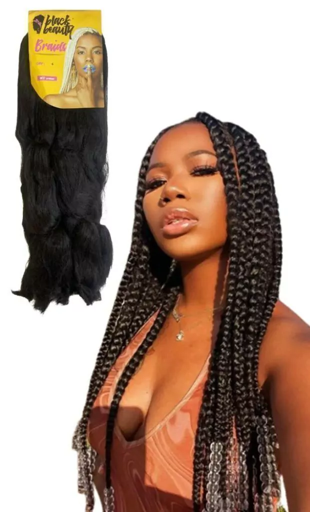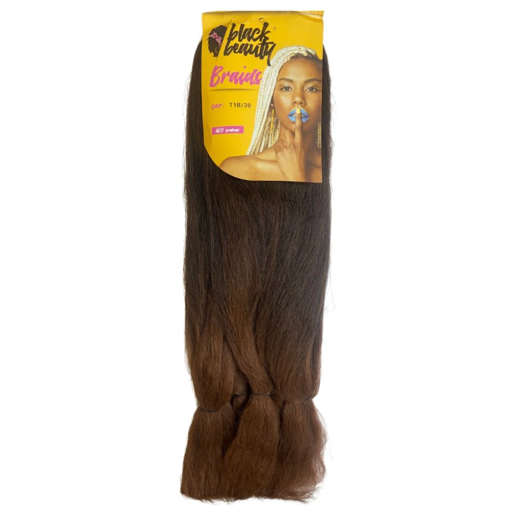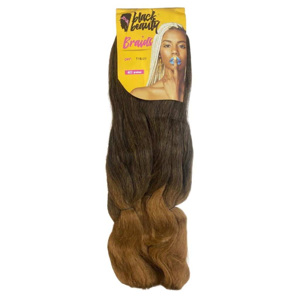 A linha Jumbo da Black Beauty é a escolha ideal para quem busca qualidade, versatilidade e durabilidade em seus penteados. Feito com fibra 100% Kanekalon, o Jumbo Black Beauty é super leve, suave ao toque e fácil de manusear, garantindo um acabamento impecável e confortável. Cada pacote contém 400 gramas de cabelo e possui aproximadamente 60 centímetros de comprimento dobrado, oferecendo a quantidade ideal para criar diversos estilos. Ele é perfeito para tranças, box braids, twists, Gypsy braids, dreads e muito mais. Sua alta resistência ao calor permite que você use ferramentas de styling para modelar os fios, criando looks personalizados e duradouros. Ideal tanto para uso profissional quanto para quem deseja praticidade e beleza no dia a dia.