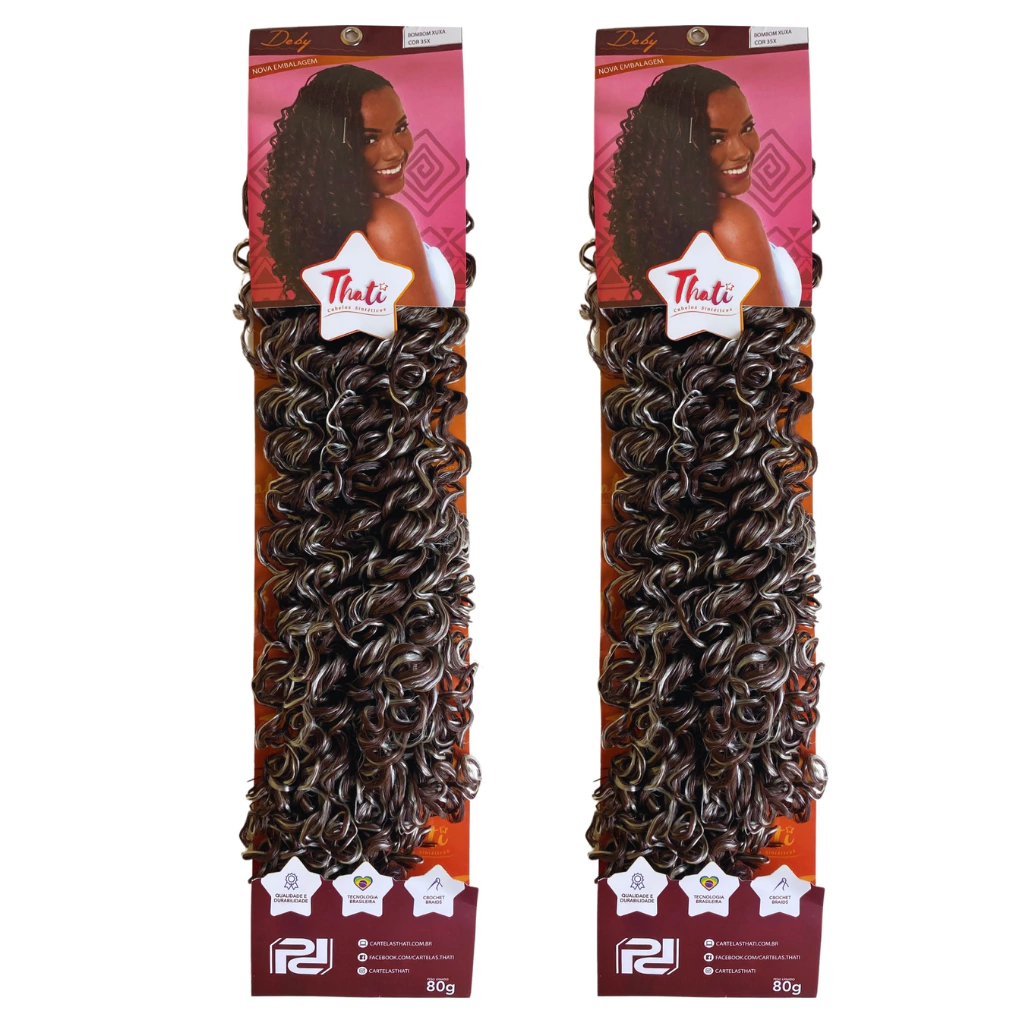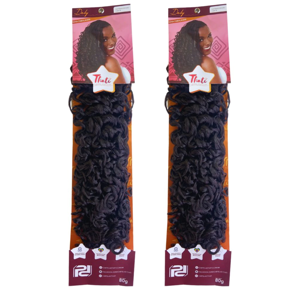 O cabelo sintético cacheado Deby da linha Thati é uma excelente opção para quem deseja cabelos volumosos, com cachos definidos e aparência natural. É fabricado com fibras sintéticas de alta qualidade, que imitam com perfeição a textura de fios naturais cacheados. São fáceis de manusear, resultando na facilidade de aplicação. Os cabelos Thati Deby permitem que você faça alongamento e utilize várias técnicas de aplicação.
